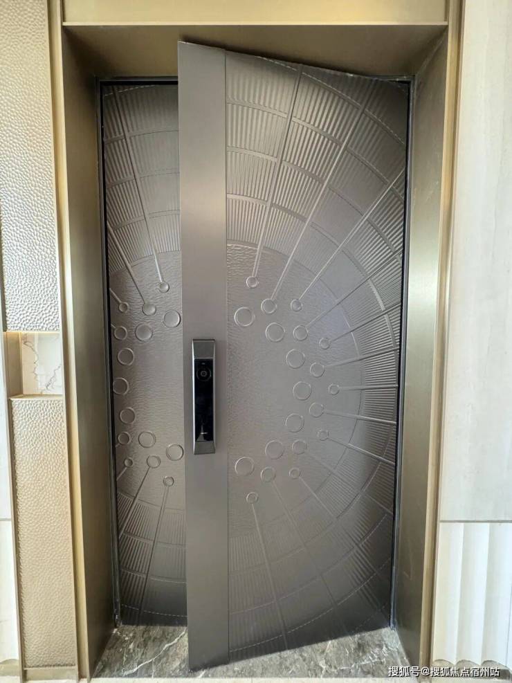 还没进入室内,直接映入眼帘的就是一扇质感十足的铸铝门。