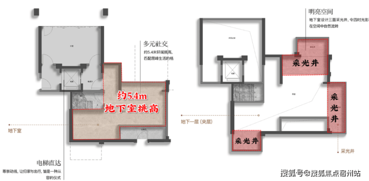 还配有3个天井自然通风采光,一举破解了地下室阴暗潮湿,形同鸡肋的大难题。