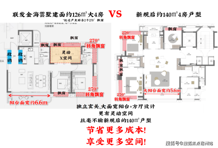 左金海雲墅126㎡户型;右其他新盘140户型,仅供参考