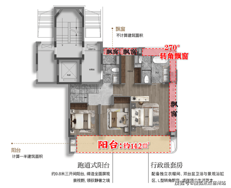 2个关键设计:“跑道式阳台”、多飘窗!