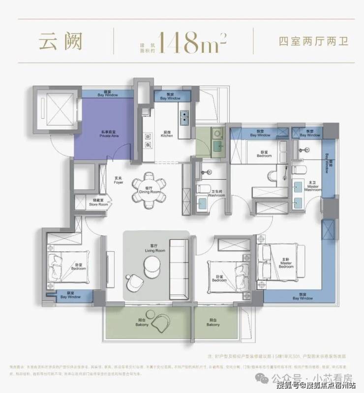创新“三阳台分区功能”:景观阳台、生活阳台、次卧阳台各司其职,解决“晾晒占用休闲空间”的生活痛点;