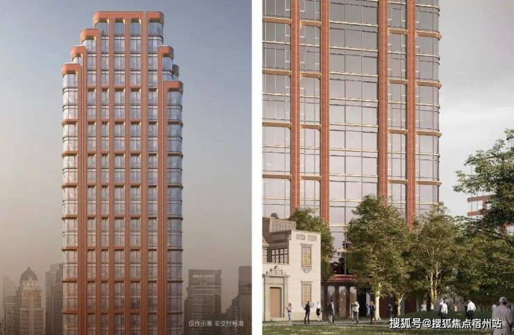 整个建筑的外立面将 经典的Art Deco立面风格与海派文化相结合,用Art Deco常用的竖向线条来解决高层建筑的挺拔感、用红色陶板来勾勒出海派老洋房的红砖意象,呼应历史、但又符合现代人高级审美。
