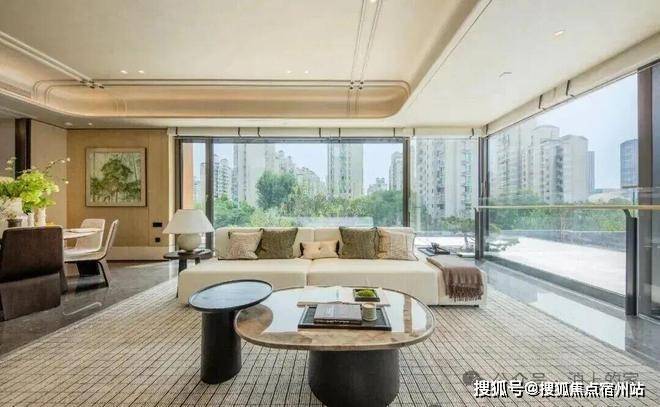 难得的是,项目外立面采用大尺度的全超白高透钢化夹层玻璃打造,光是单块玻璃就重达2.5吨,部分户型约12米连续无柱化设计,搭配270°转角全景视野,呈现出入画般的视野纵深