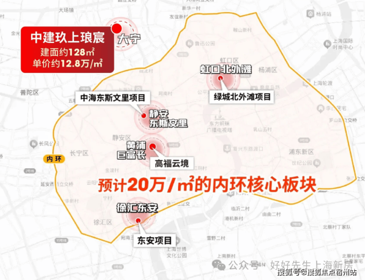 超级重磅消息!静安顶豪,中建玖上琅宸明日开启认购。项目二期均价约14.68万/㎡,其中建面约128㎡单价仅约12.8万/㎡。这个价格是什么概念?首先,与内环新房相比。
