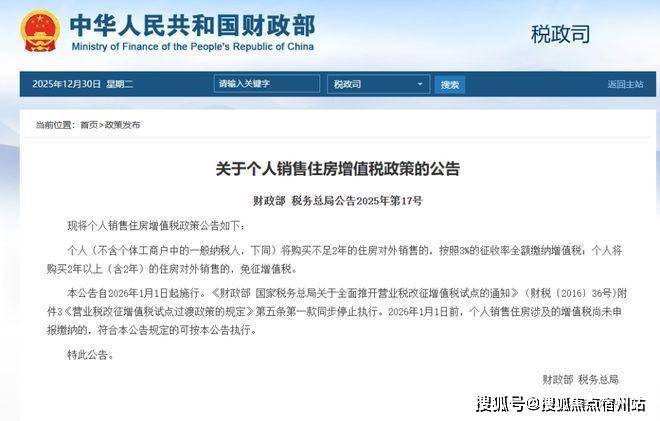 2026年新政后:满2年,增值税直接归零!只需缴纳契税5万。