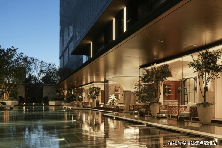 当夜幕降临,会所内暖调灯光次第亮起,光影倒映在池水中,与对岸郁郁葱葱的自然景致对话。无需刻意雕琢,用生动的场景营造来体现奢享内核。
