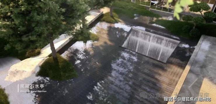 借鉴《高士观瀑图》的哲学,叠瀑镜池荡开涟漪,照见生活的褶皱里藏着的柔软与坚韧,以水之柔,打造可观、可游、可赏,立体多维水景园林。