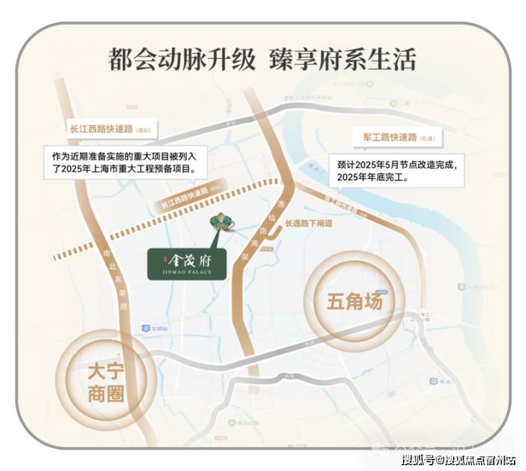 占位淞南最中心五角场地块,是金茂府上海首座TOD项目!