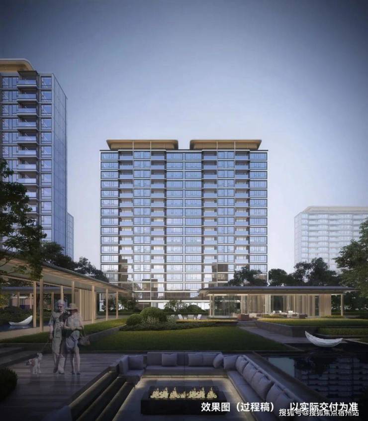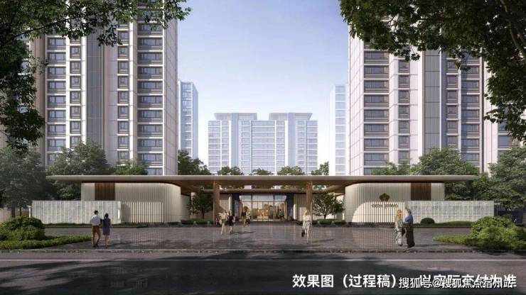 在建筑立面上, 通透玻璃幕墙叠加铝板,缔就钻感镜幕墙, 「江湾之钻」钻感面屏+大窗墙比,地标艺术美学,境启全新奢宅风尚。营造 约60m尺度奢阔归家门庭,通过奢石、铝板、水景、弧线等精妙组合,成就江湾显赫的府邸门面,礼遇每一次的世界归来。