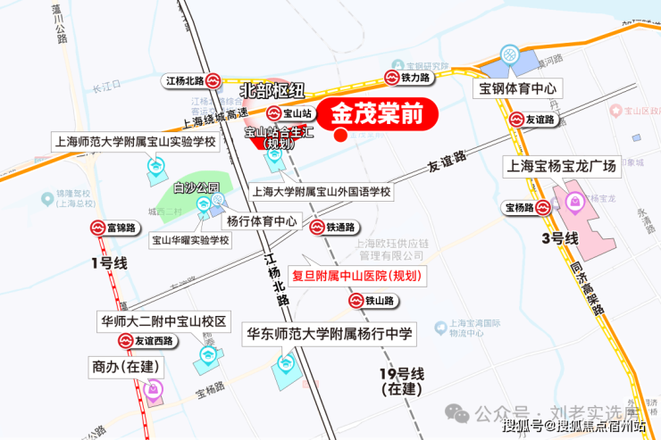 金茂棠前落子宝山站(在建)TOD核心辐射区,占据19号线(北部始发站)与3号线双轨交汇的黄金坐标。