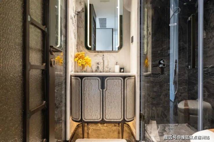 项目建筑由尤安团队操刀,采用现代海派风格。外立面甄选蓝灰色玻璃、仿铜色铝板与深色石材搭配,历经时光洗礼仍能保持优雅质感。