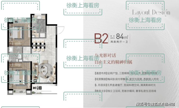 共有4个主力户型,包括建面约84㎡2房2厅1卫,约99㎡3房2厅2卫,约108㎡3房2厅2卫,约130㎡4房2厅2卫,户型设计得非常棒!