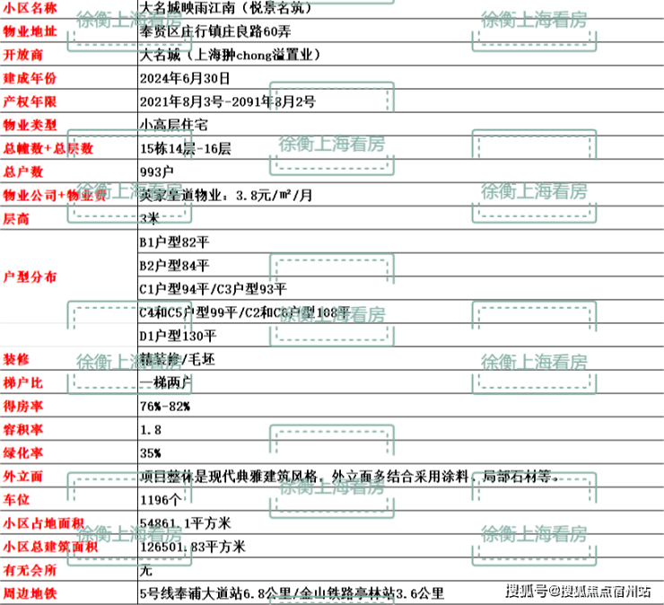 老闵行价格已达到5.9万/㎡,奉贤新城价格也在4万/㎡+,大名城·映雨江南均价29866元/㎡,价格差非常明显。
