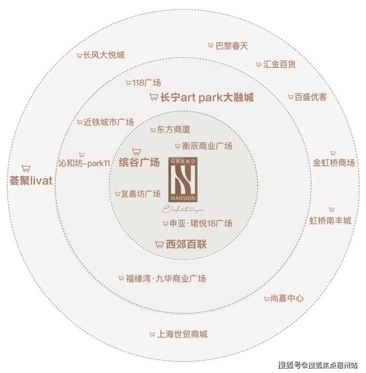 临近缤谷广场、百联西郊购物中心,东方商厦等老牌商业,3KM范围内涵盖金虹桥商场、上海荟聚、虹桥南丰城、尚嘉中心(LVMH集团投资)等超106万方商业综合体