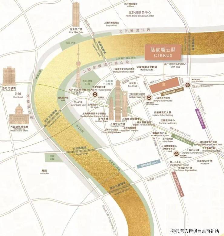 项目直线距离东方明珠约1.3公里,毗邻九庐。周边拥有2/4/14/19号线四条轨交。