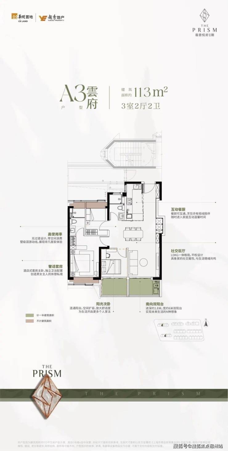 建面约113㎡3房,约170㎡东边套