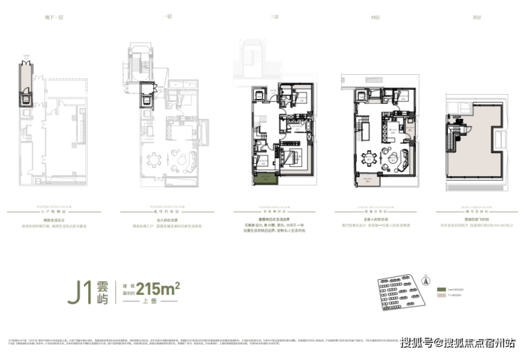 建面约215㎡上叠 : 屋面+庭院+地下室+ 露台+阳台的整体 附赠 空 间约110㎡ ;