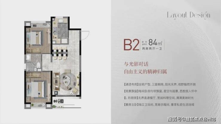 建面约84㎡2房2厅1卫,做到了双开间朝南+双卧室带飘窗+动静分离,非常宽敞的2房户型。☑️☑️大名城映雨江南售楼处电话:400-1183-605☑️☑️