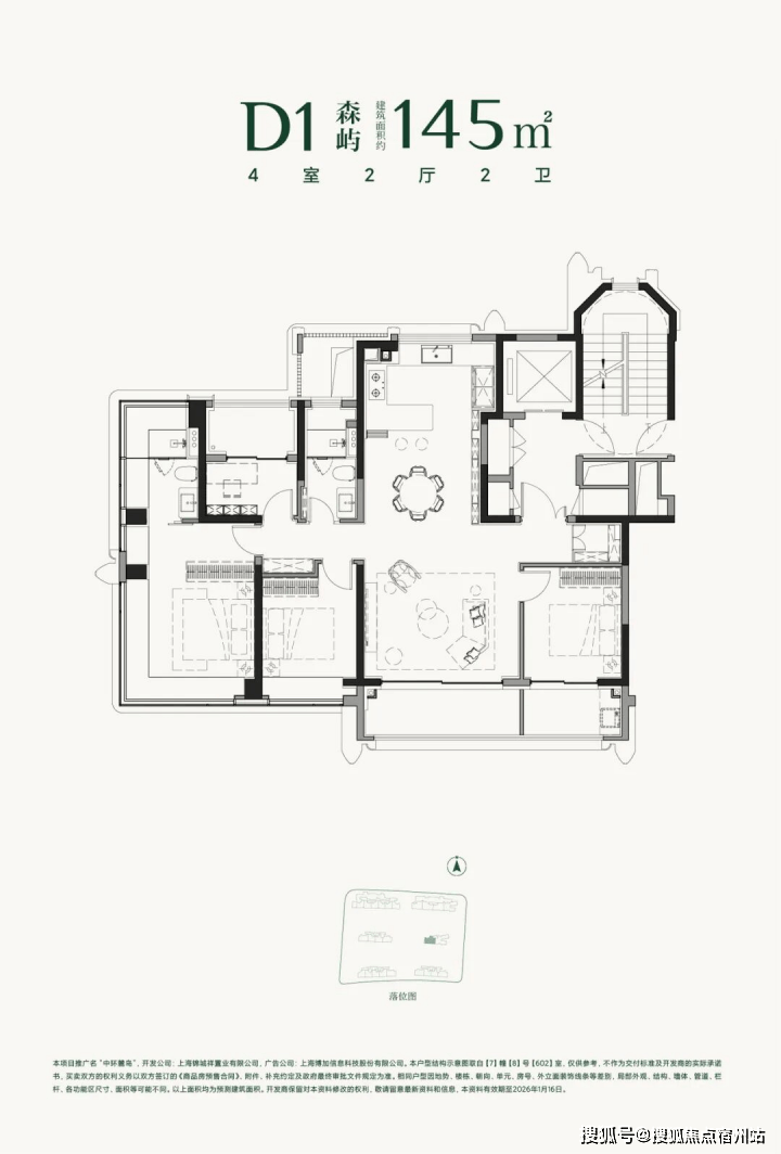 建面约145㎡的四房两厅两卫