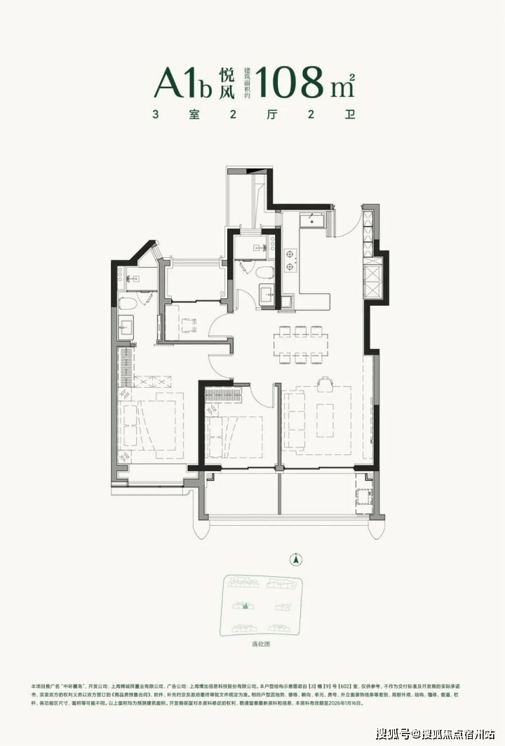 建面约108㎡的三房两厅两卫