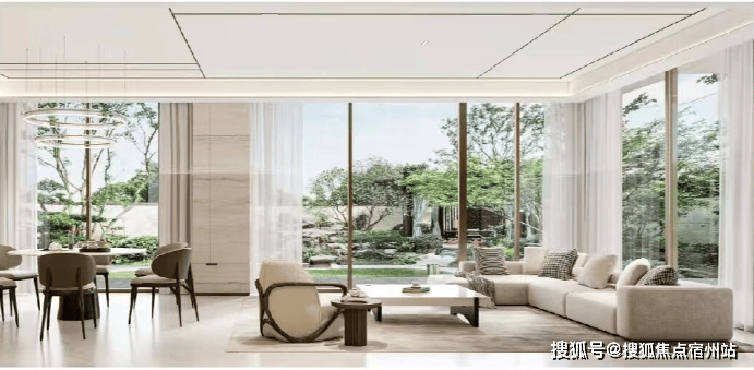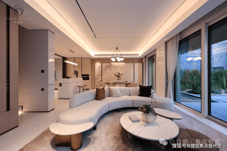怀山望以曲面设计,搭配南向约0.6超高窗墙比,约270°环幕全景舱,消融室内外界限,阳光与风景自然涌入。