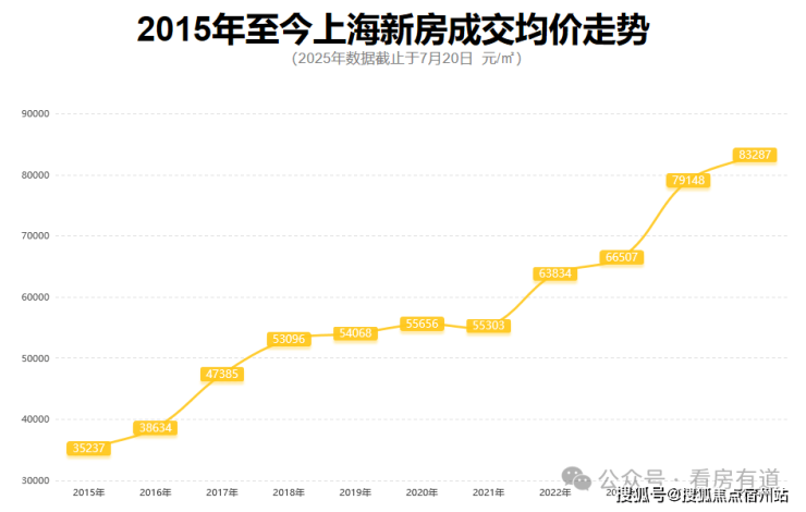 2015年上海新房均价约 35237元/㎡ ,到了2025年,这个数字坐了火箭般跃升到了约 83287元/㎡ (2025年数据截至到今年年中) 。