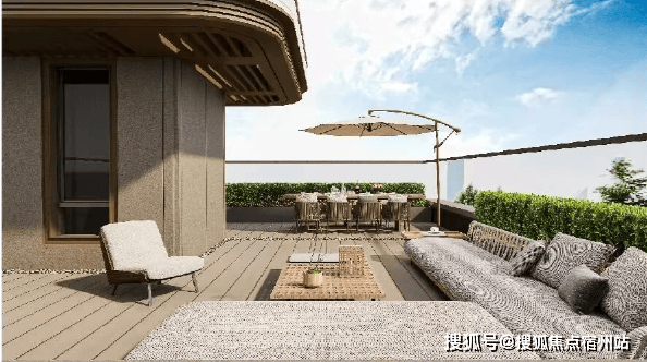 下叠配备庭院,形成 私属空间, 实现室内外功能场景的无缝衔接 ;上叠专属赠送 超大尺度屋顶花园露台 ,拓展多元使用场景与视野维度。