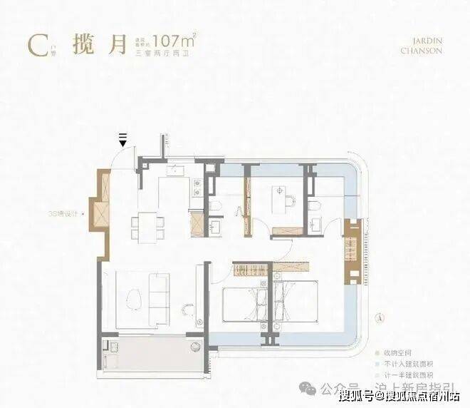 其三,北地块建面约101㎡3房产品具备划时代的创新意义。