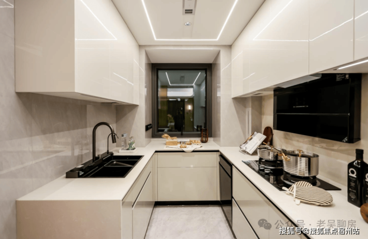 同样,保利虹桥和著也标配了全屋飘窗,大幅增加了实际空间使用率,比如厨房,利用飘窗空间,打造了 U型操作台面,空间更加富裕!