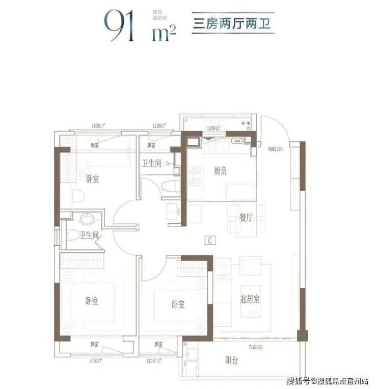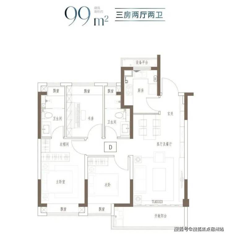 户型特点:3开间朝南,全屋阳光充足;L型厨房转角移门设计,最大化空间视野;四飘窗设计,通透空间享受;动静分区,亲密有度;套房式主卧,容纳私谧生活点滴;
