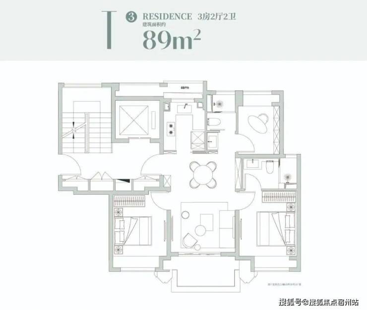 厨房、餐客厅、阳台形成直线通风廊道,南向三开间+宽尺客餐厅,轻松容纳二胎三代家庭的日常;