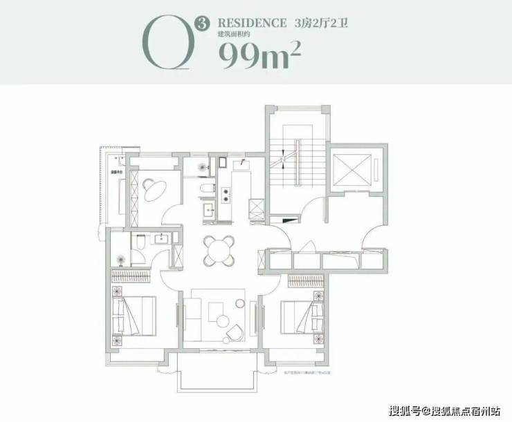 而前滩滨江道的99㎡三房,一梯两户无连廊。