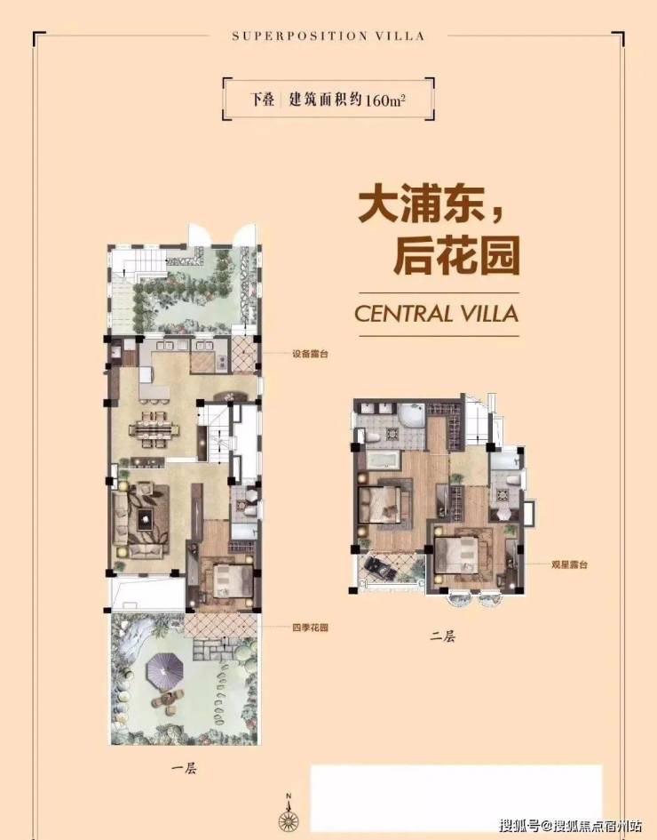 下叠户型是建筑面积160平米,享有130平米左右的双层阳光地下室,下叠户型由地下一层、地上两层总共3层空间组成。