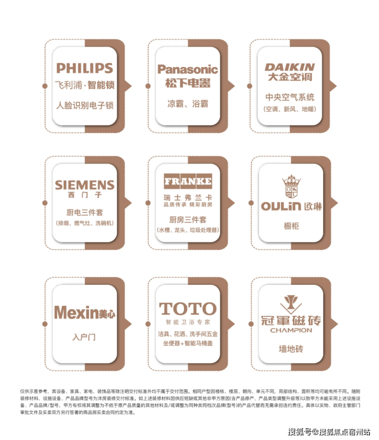 随附装修材料、设施设备、产品品牌型号为洋房装修交付标准。如前述装修材料因供应短缺或因其他非甲方原因(含产品停产、产品类型调整升级等)以致甲方未能采用前述设施设备、产品品牌/型号,甲方有权将其调整为不低于原产品质量的其他材料及/或调整为同种类同档次品牌(型号)的产品代替而无需承担违约责任。以上内容仅供参考,具体以双方签署的《上海市商品房预售合同》、相关附件协议、政府最终审批文件及实际交付现状为准。