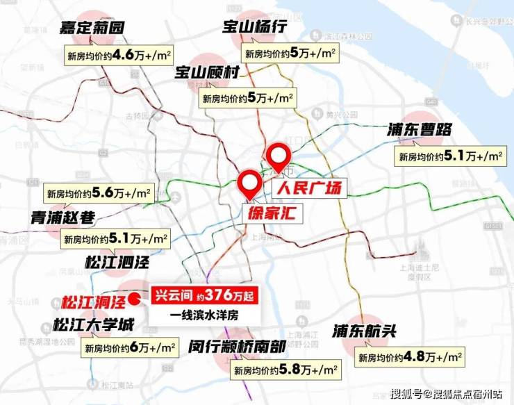 一些像奉贤新城、青浦新城、徐行这类靠近上海边缘的区域,其新房的均价也要在约4.5万/㎡左右,百平米3房怎么都要约450万级的价格了。