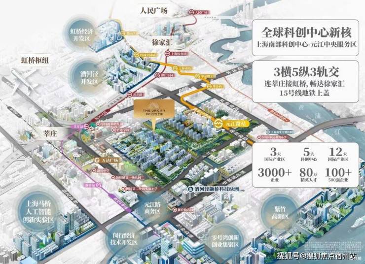 「保利·光合上城」所处的元江片区与金色中环 仅相隔一条虹梅南路 ,开车上高架能直达 漕河泾、前滩、张江 等高能级板块,区域能级爆发出惊人潜力, 未来将实现质的飞跃!