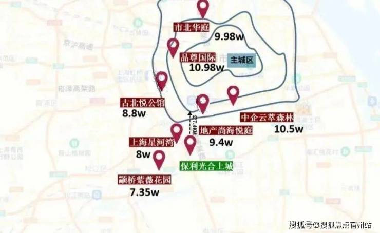 像是中企云萃森林入市均价 10.5w ,地产尚海悦庭入市均价 9.4w 、古北悦公馆入市均价 8.8w ,市北华庭入市均价 9.98w ,品尊国际入市均价 10.98w ......