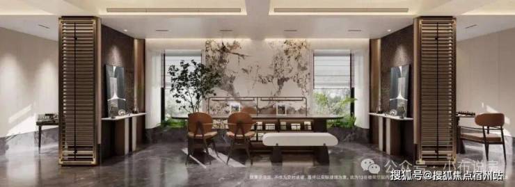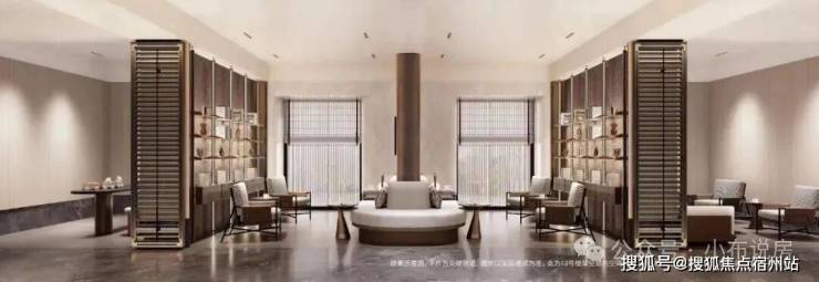 顶部香槟金造型 的异型 铝板 精致 典雅 ,搭配手工打磨的璀璨星空顶,仿若将银河纳入社区;地面仿石砖沉稳大气,与墙面汲取华尔道夫酒店精髓的浅米系大理石贴面相得益彰,营造出优雅静谧的氛围。