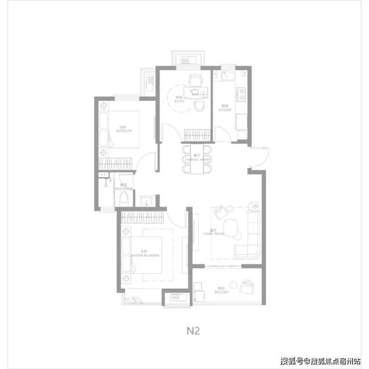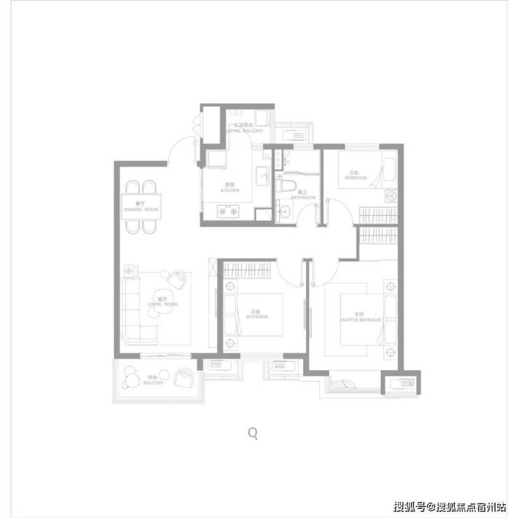 建面约116㎡三房两厅两卫,南北通透,户型方正,主卧大套房,带阳台与独立主卫,更舒适的居住尺度。