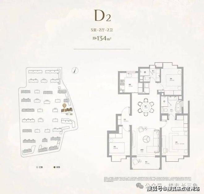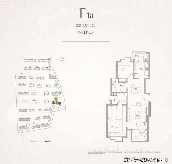 其中建面约101㎡2房2卫,总价预计千万以内,主卧套房不仅拥有独卫,还有步入式的衣帽柜,也可以设计一个梳妆台,尺度感不输市面上120㎡户型的主卧;南北双阳台,彻底告别了传统单阳台在功能上的纠结与妥协,从客厅望出去不再有衣物遮挡光线和视野。