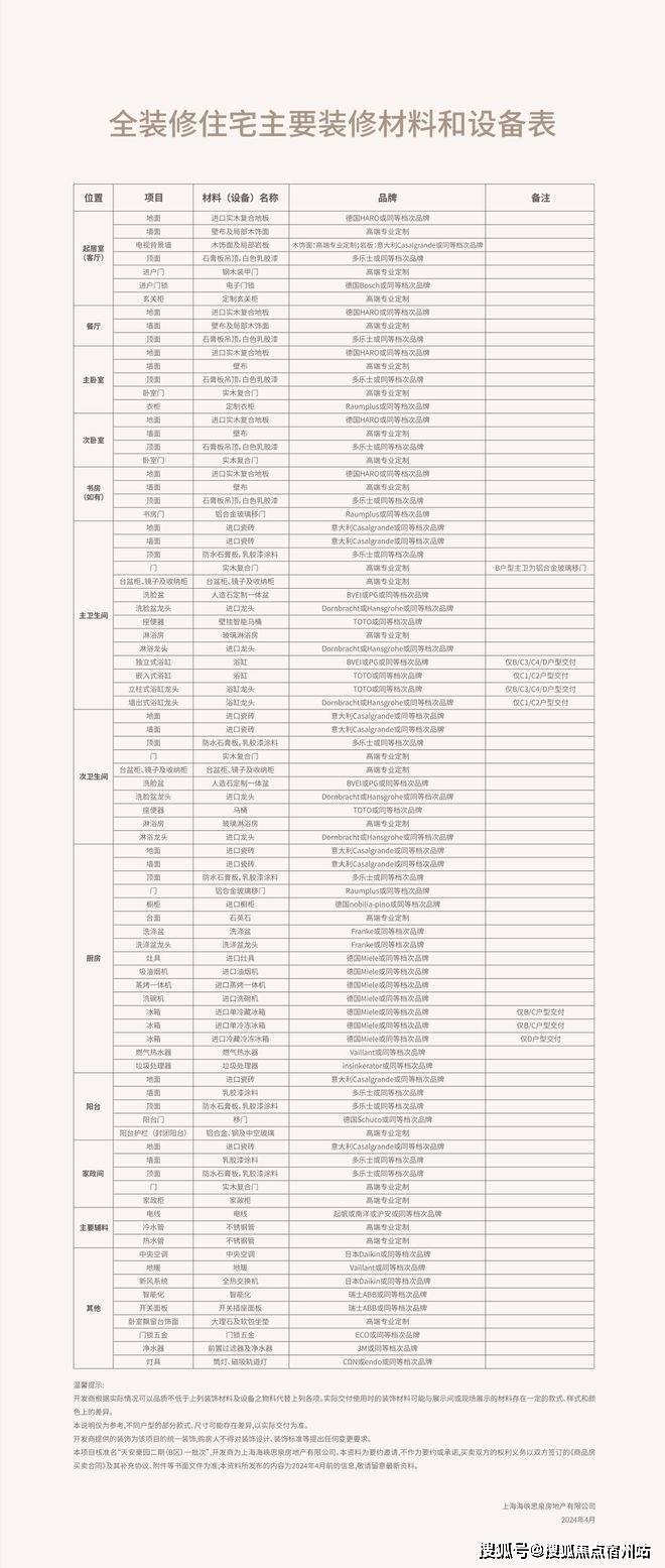 主卫采用TOTO(或同等品牌)挂壁式智能马桶,水龙头、花洒全部采用德国当代(或同等品牌),号称“卫浴届的劳斯莱斯”;
