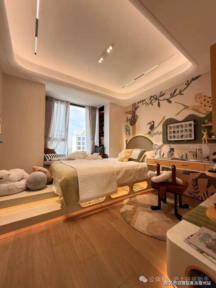 该户型非常适合或三口之家或二胎家庭居住,空间尺度绰绰有余。
