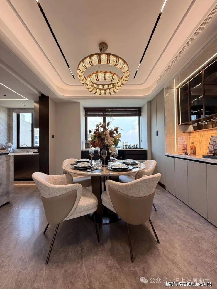 客餐厅相对独立,客厅+次卧南连约6.7米宽景阳台,餐厅北连大飘窗,层高3米,室内空间尺度瞬间体现出来;