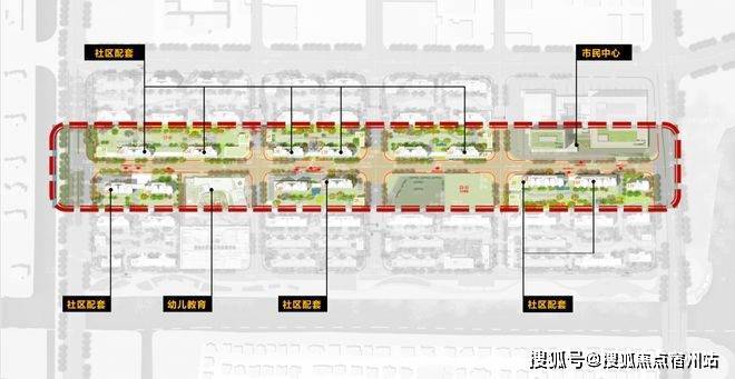 一街为活力商业街,通过纵向布局,在街道两侧配上丰富立体的商业,包括沿街商业、邻里中心、乐活商业街等,满足居民日常的需求。