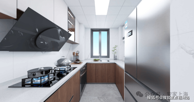 厨房为U型布局,配置 定制橱柜、老板烟灶、林内热水器 ,台面为人造石,水槽为邦克台下盆,细节处体现人性化考量。 璟澜湾售楼处电话:400-9975-759
