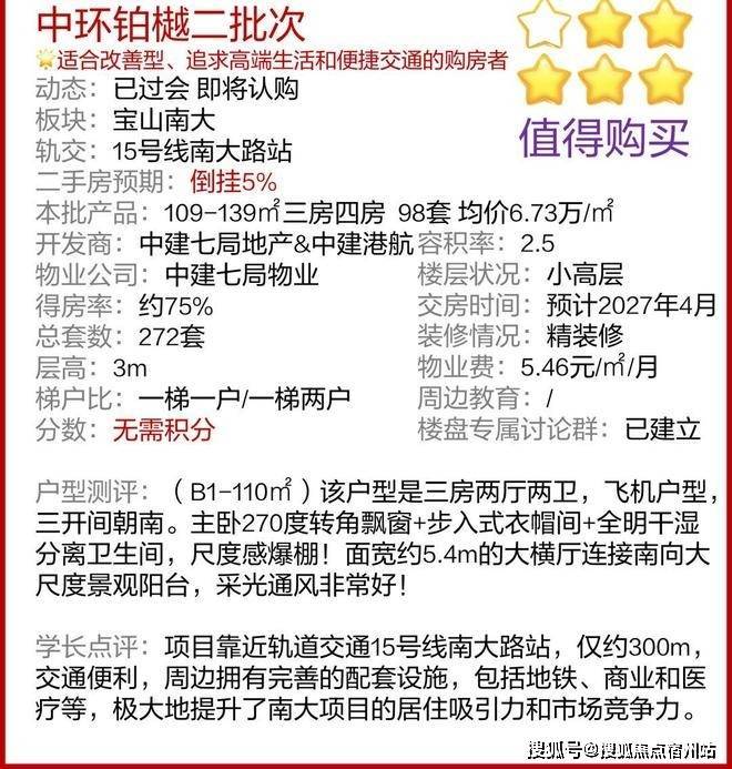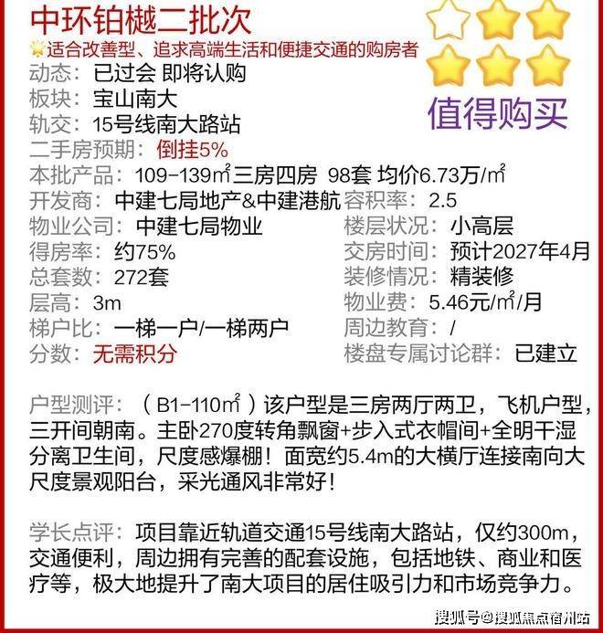15号线&7号线双轨交护航:项目距离15号线南大路站仅约300米,就在家门口!可快速直达上海西站TOD。更临近7号线,可速达静安寺、徐家汇等核心商圈。出行通勤,无需等待。教育资源也十分充沛,项目周边分布了14所学校——8所国际蒙氏园+2所双语小学+1所科创初中+1所市重点高中+2所九年一贯制旗舰校! 其中宝山区南大实验学校、南大实验幼儿园等5所学校均已建成并投入使用;市实验性示范性高中上海师范大学附属中学宝山分校也已竣工,等待交付使用。中环铂樾售楼处电话☎:400-833-6309(预约热线)✔✔✔