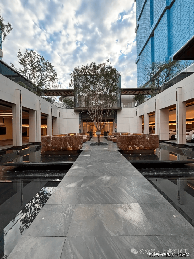 比如,整个下沉式庭院材料选用 土耳其进口老虎玉 , 由匠人耗时60天手工打磨定制 ,可见海上·清和玺对业主归家仪式感设计的用心与苛求。海派光厅之外的归家迎宾树木更是由设计师 辗转多个城市才寻到的、树龄超60年的福木“紫薇” 。