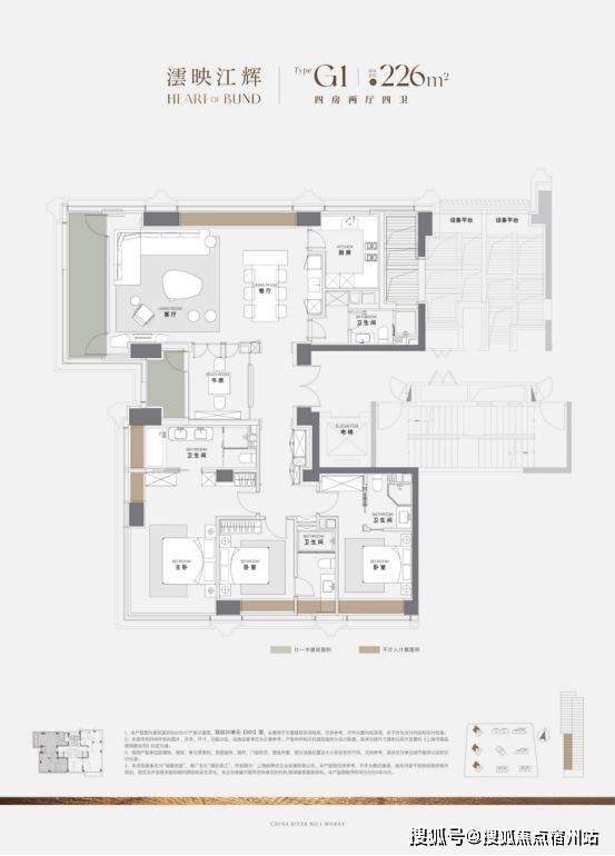 226㎡四房两厅四卫全明格局,以「南向三卧+蝴蝶灵动线」重构空间美学——三间卧室皆朝南纳光,主卧更以270°无柱转角巨幕,将江景化作流动的油画;