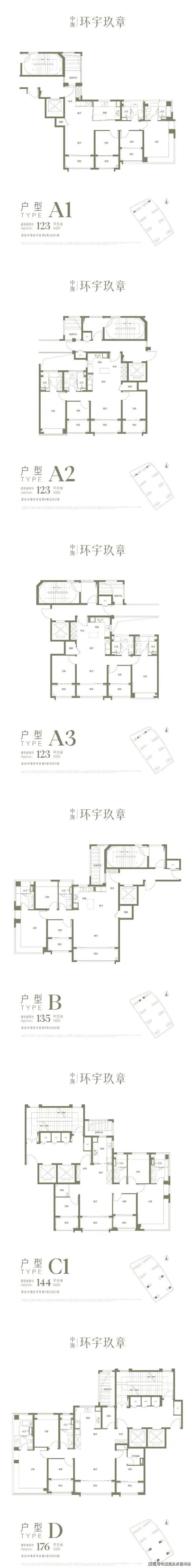 4、 【新规后大三房】 135平户型,三阳台,全飘窗,实得率约93%。每个卧室空间尺度舒适,这个户型非常适合需求强收纳的粉丝,收纳总量可达32.5平,实现收纳自由;