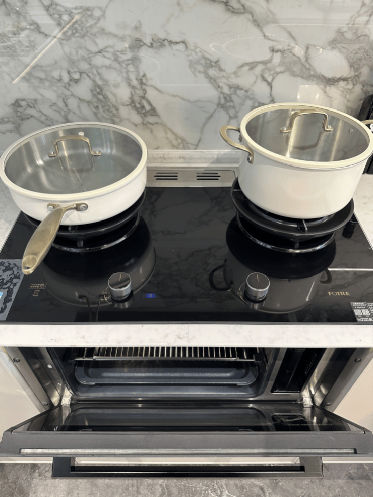 在厨电品牌上,项目采用了方太(或同等品牌)四件套,包含了烟灶蒸烤及洗碗机。方太烟灶联动,可挥手感应。象屿配置的方太厨电,均为市面零售款,相比于一些进口大牌,方太的大吸力,对中式家庭更友好,可以更有效地处理爆炒带来的油烟。蒸烤箱的操作界面,也设置在台上,不用弯腰,非常友好。